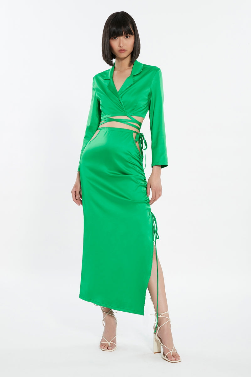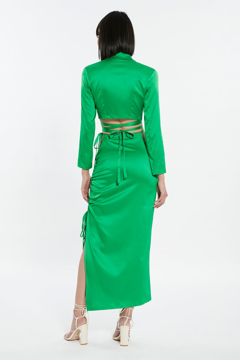 Meet Gaia, the sophisticated but sexy two-piece set you didn't know you needed until now. Crafted from the most gorgeous satin, this set is guaranteed to turn heads at your next event.